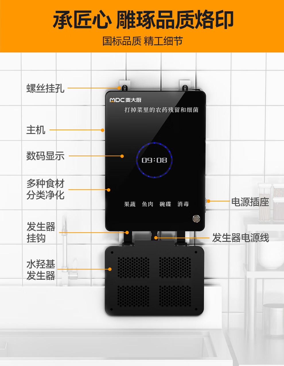 麥大廚1.0m單槽壁掛式水觸媒凈化清洗一體機商用