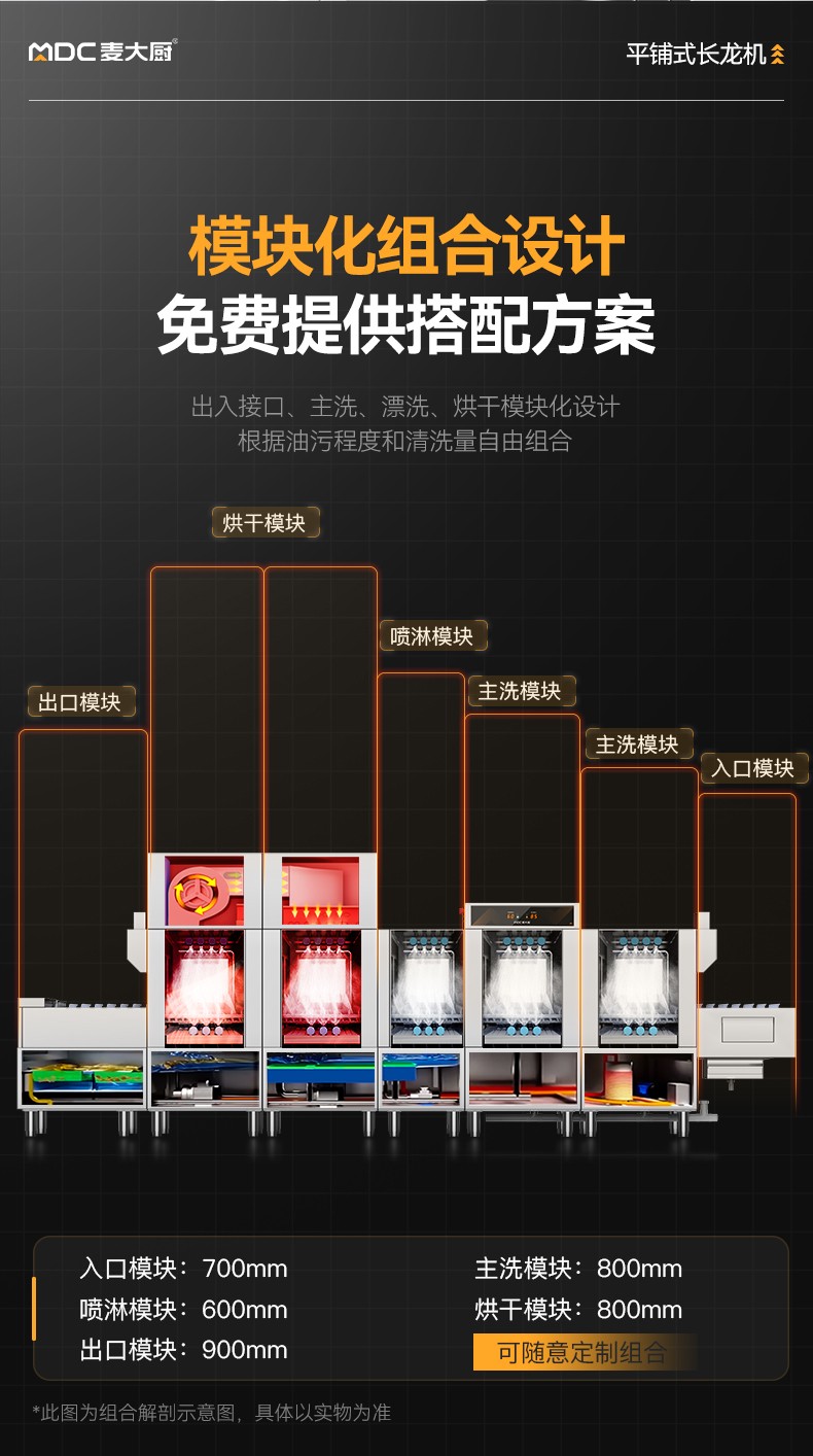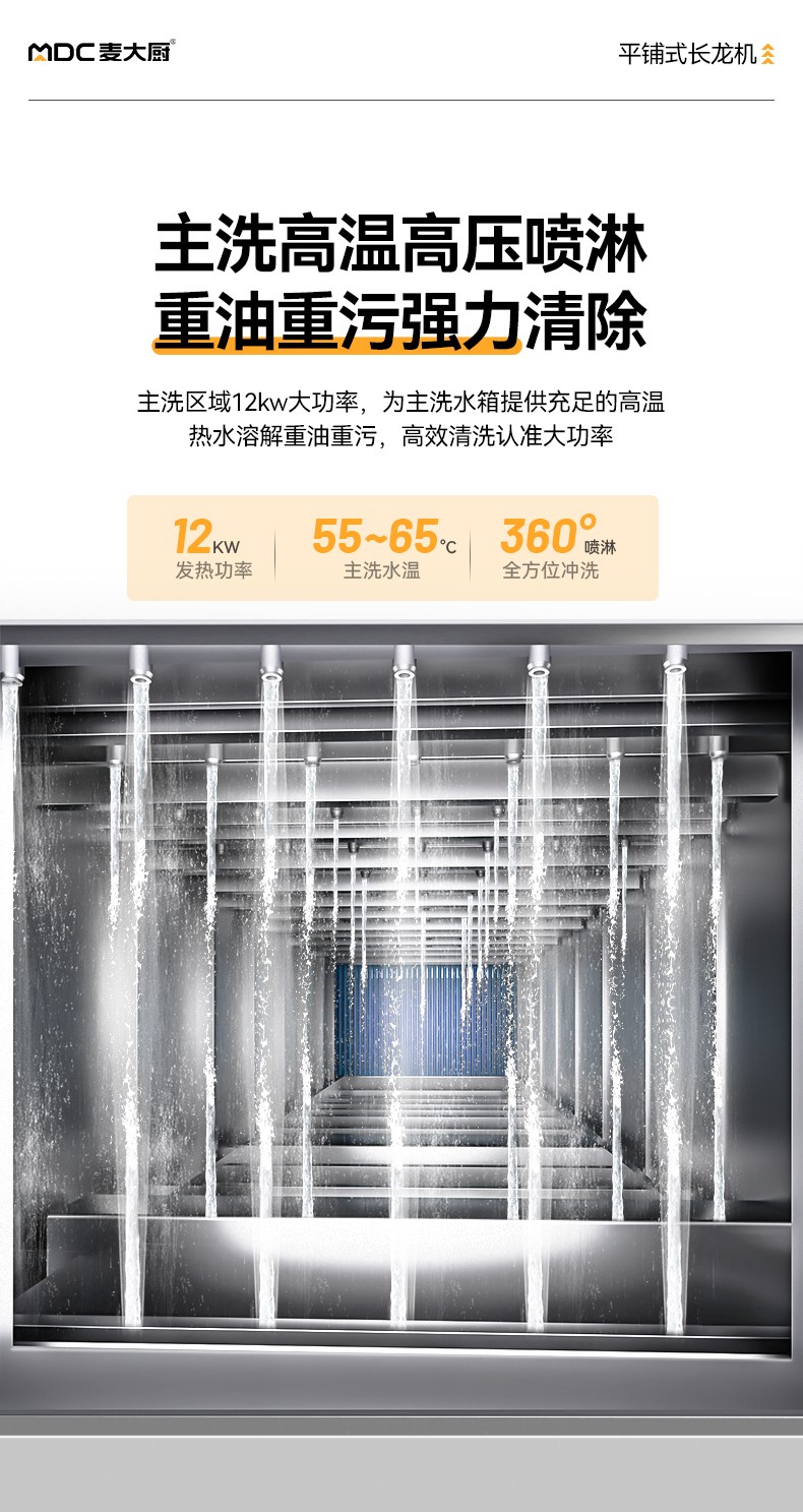 麥大廚5.7m豪華款平放式雙缸雙噴淋雙烘干商用企業洗碗機