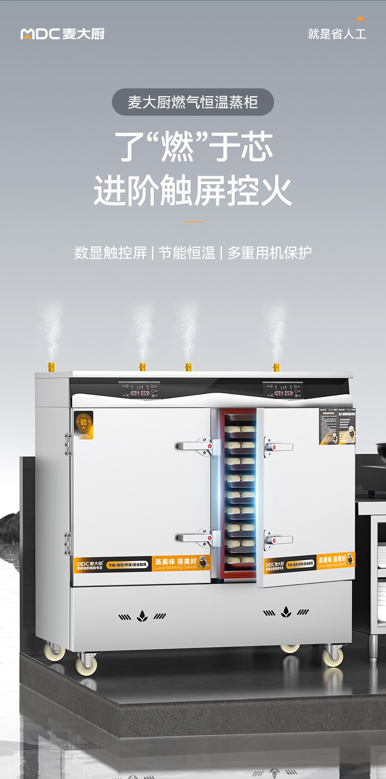 麥大廚商用雙門36盤智能恒溫燃氣蒸飯柜大型食堂蒸飯箱
